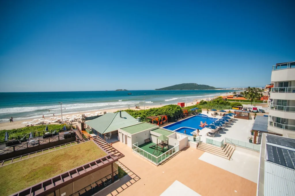 que abriga Florianópolis, o Slaviero Ingleses Convention tem uma saída direto para a praia com serviços de cadeiras e guarda-sóis para os hóspedes.